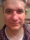 Monday evening I was sitting on my patio, enjoying the beautiful South Florida weather, when I looked up I saw our little dog Chewie. He had climbed up on the dining room table. Margot had several of her precious tea cups and tea pots sitting out. I was concerned that Chewie would knock one off and break it. I dashed into the house when….. smack… I ran full tilt into the window. I had missed the opening where the sliding glass door was open. Instead I crashed nose first into the window. My nose began to bleed right away. I am pretty sure there were also birds chirping as the flew circles around my head.