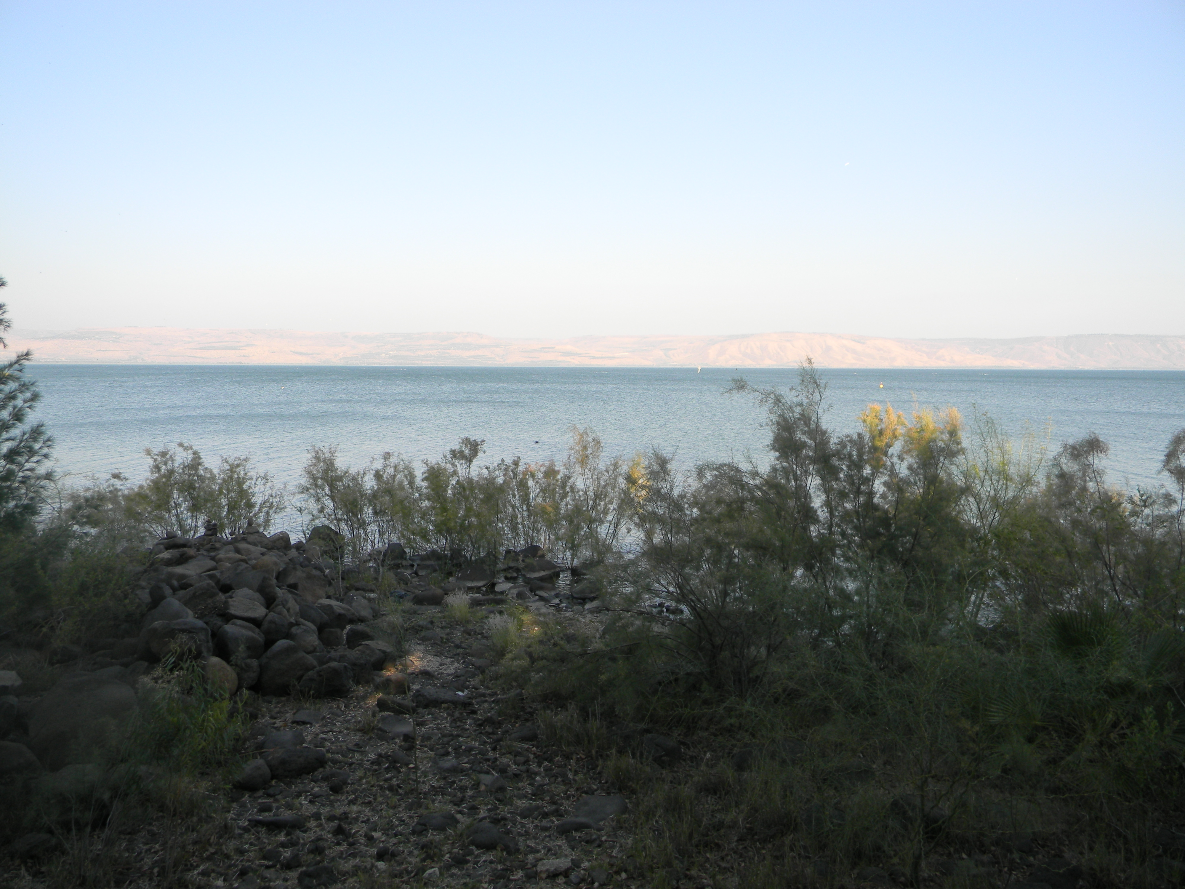 Tonight I sit on the shores of the Sea of Galilee watching the reflections of the full moon across the waves, the gentle breeze refreshes my soul. We are staying at a guest house just north between Tiberius and Capernum. Today we set out early from Amman crossed the border into Israel bidding our guide Hani a fond farewell. We are met by another guide, Dr. John Petersen. I guess our guides will all be named John, Hani is a form of the same name. Anyway upon crossing the Jordan River, which isn’t very wide at all we made our first stop at  Bet Alpha, where we see the remains of a synagogue and are intrigued by the mosaic bearing a zodiac. Why would a zodiac be in a synagogue?
