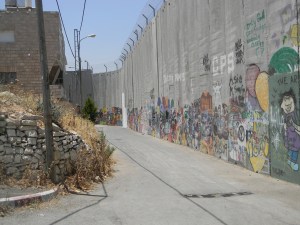 I walk down as street divided by the despicable wall. I am invited to the store of Claire Anastas. This dear lady tells of the days and nights that her family’s home and business was in the middle of no man’s land during the Intifada. Many nights after the family had gone to bed there would be a loud banging at the door. Claire would try to get to the door before it was busted down. The Israeli soldiers would burst in and take over the house crowding the family into an vulnerable place. Meanwhile the soldier take up protected positions in the battle that raged. Claire’s family would huddle together and pray for God’s protection. She remembers many times the Lord heard their desperate prayers.